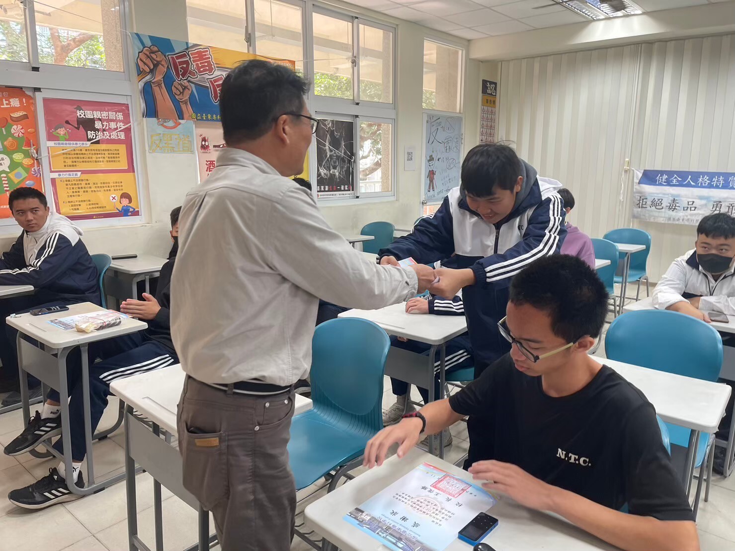 每學期固定徵召【交通安全服務隊】為本校交通服務,除接受基本訓練外,還給予每個月工讀金並定期聚餐凝聚團隊士氣。