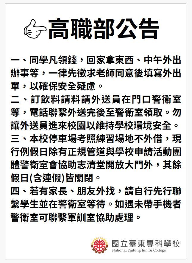 【軍訓室】高職部校園安全公告